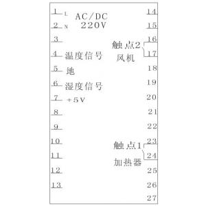 6、輸出接點:(1)AC220V,3A,可帶交流風扇(2)AC220V,3A,可帶加熱器